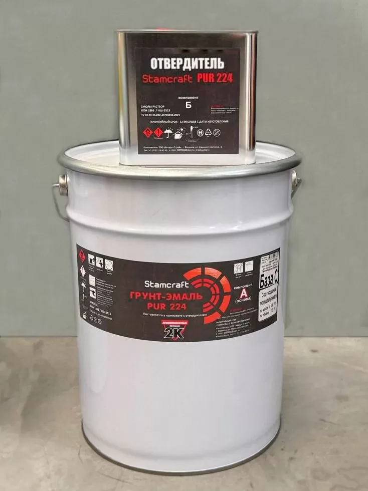Грунт-эмаль полиуретановая STAMCRAFT PUR 224 RAL9005 глубокий черный полуглянец (бар.17 кг) - характеристики