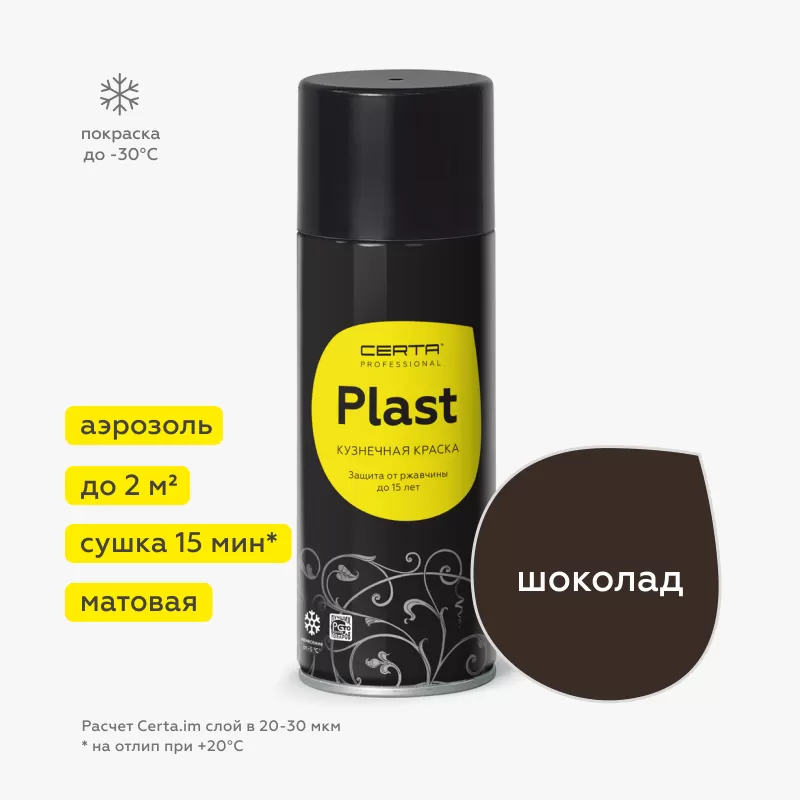 Кузнечная декоративная антикоррозионная краска CERTA PLAST (аэрозоль) применяется для декоративной отделки и защиты от коррозии, а также в условиях повышенной влажности и перепада температур от – 60С до +150С. .Наносится на бетонные и металлические поверхности: железо, сталь, цветные металлы и их сплавы.